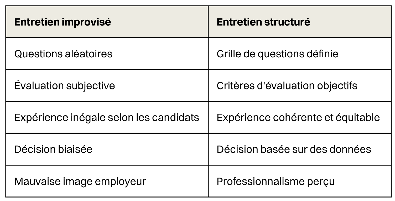 Ce qu'un bon entretien structuré apporte :