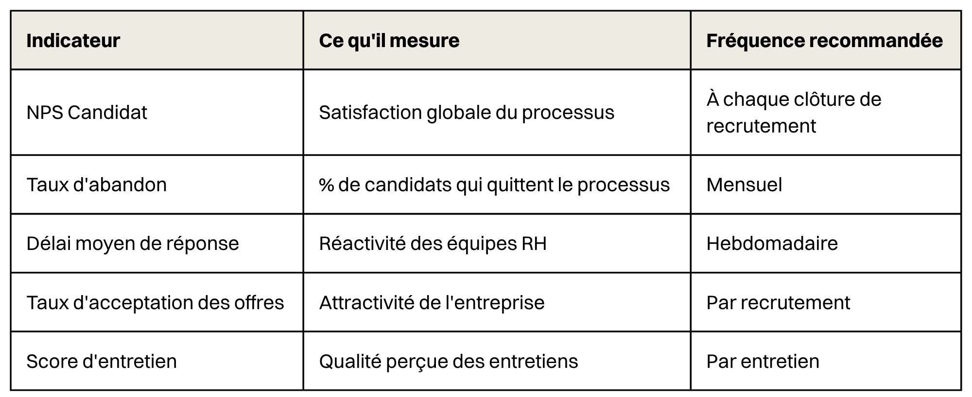 Ce qui ne se mesure pas ne s'améliore pas. La satisfaction candidat est un indicateur de performance RH au même titre que le taux de rétention ou le délai de recrutement.